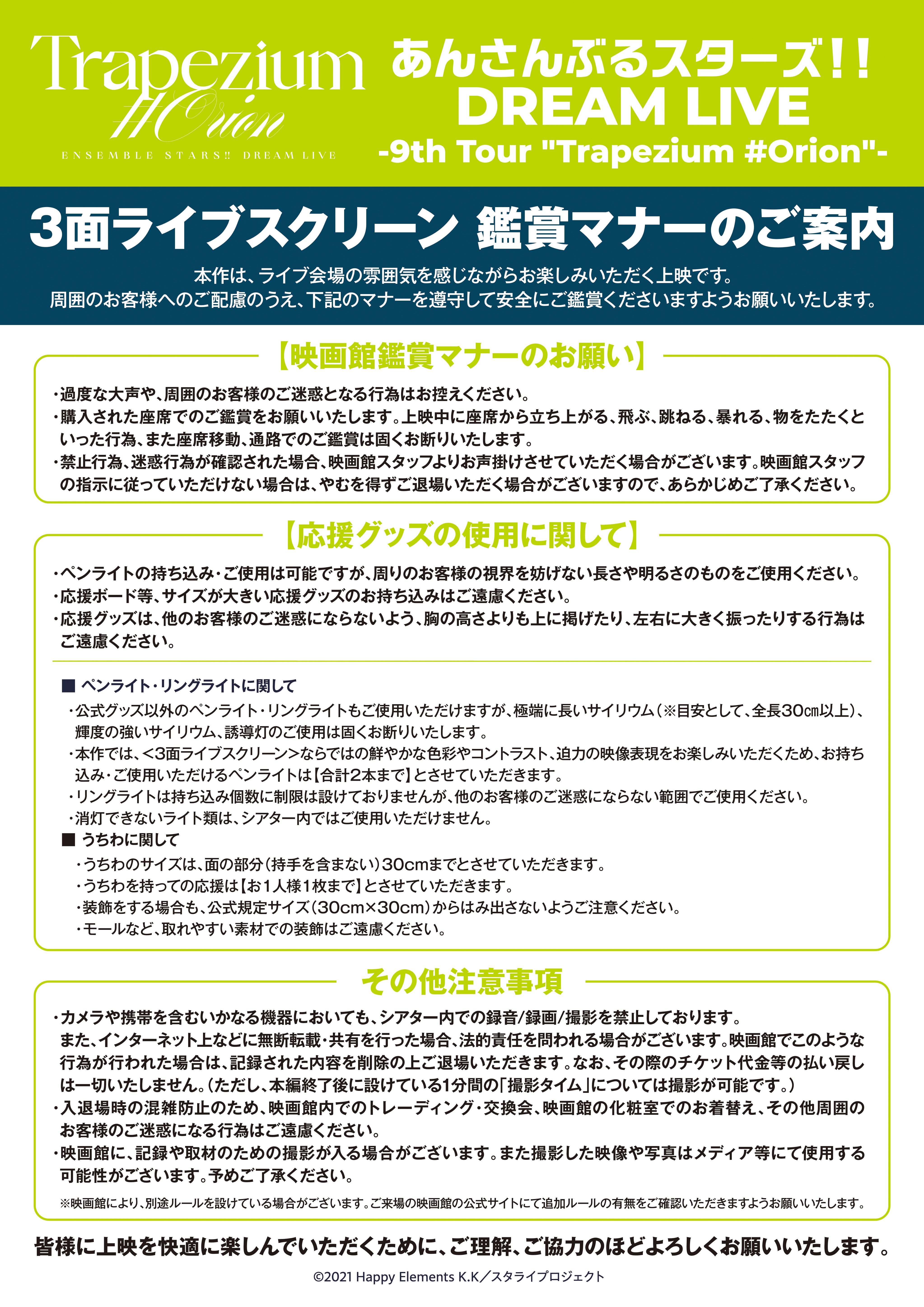 「あんさんぶるスターズ!!」のバーチャルライブ『あんさんぶるスターズ!!DREAM LIVE -9th Tour “Trapezium #Orion”-』が、【3面ライブスクリーン】にて2026年1月16日(⾦)〜2月12日(木)全国4カ所の映画館で公開!