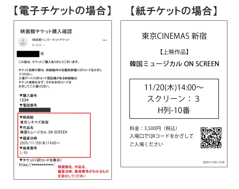 ※ムビチケをご利用の場合は、購入履歴ではなく、入場時に使用された半券、または鑑賞履歴が含まれている画面をご使用ください。